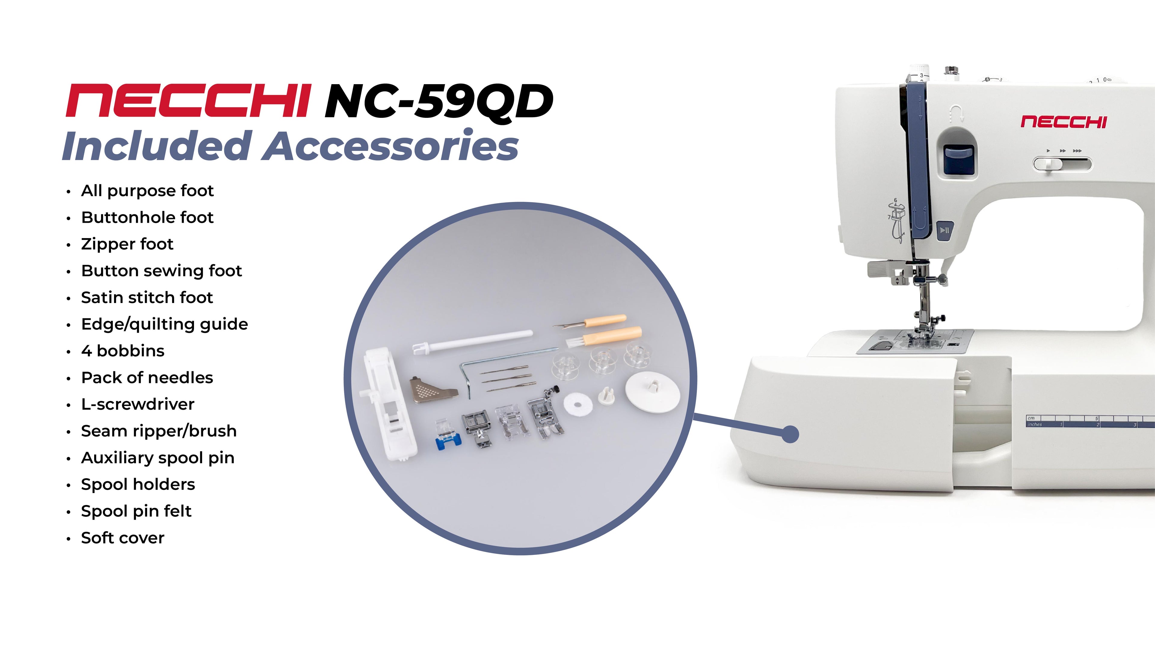 The Necchi NC-59QD is designed with beginners in mind, offering an array of features that make sewing a breeze. Whether you're just starting or looking to upgrade your current machine, the NC-59QD provides the perfect blend of simplicity and advanced functionality.