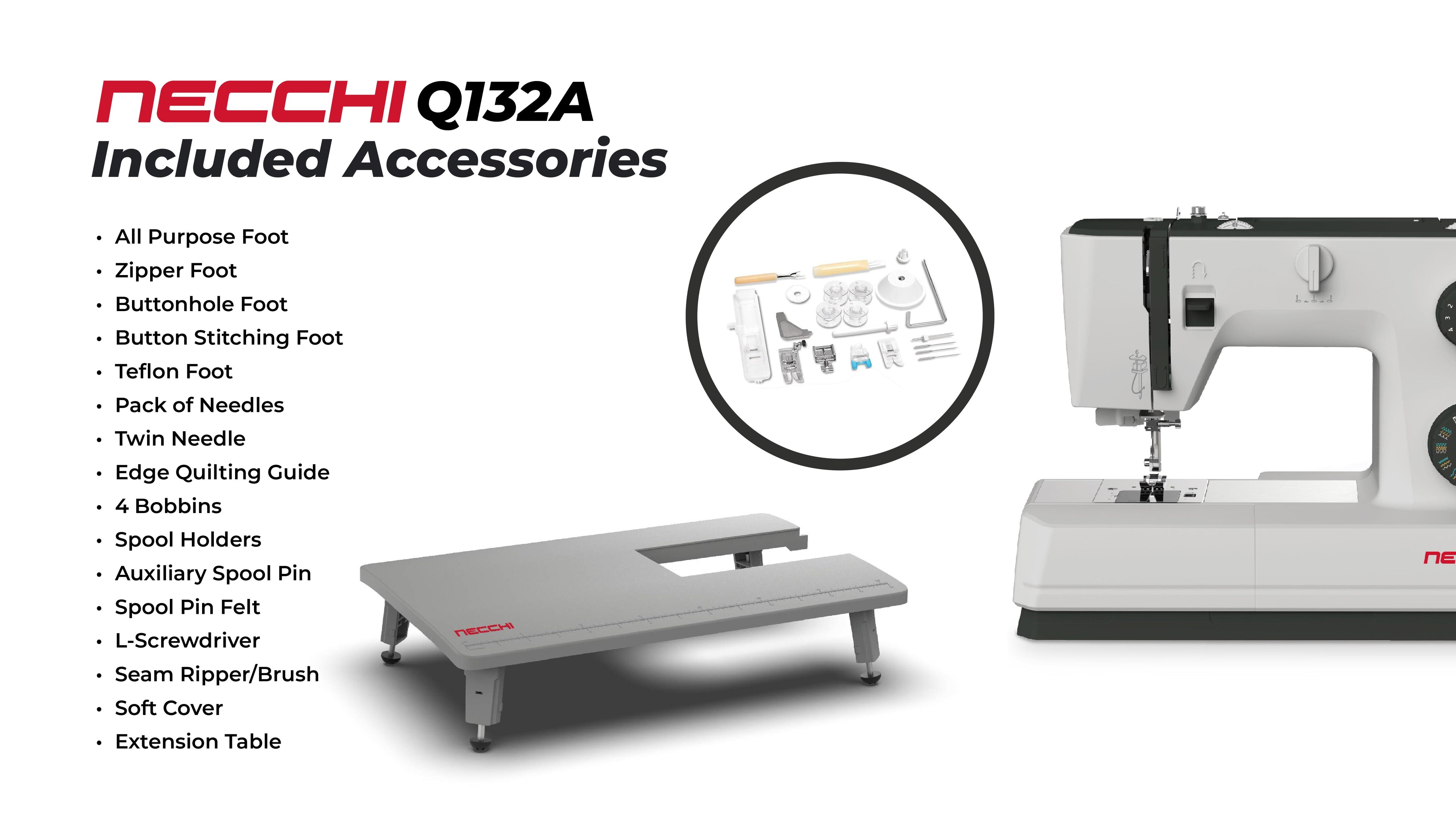 The Necchi Q132A is a versatile and reliable mechanical sewing machine designed to meet the needs of both beginners and experienced sewers. With a robust set of features and accessories, this machine is perfect for tackling a variety of sewing projects with ease and precision.